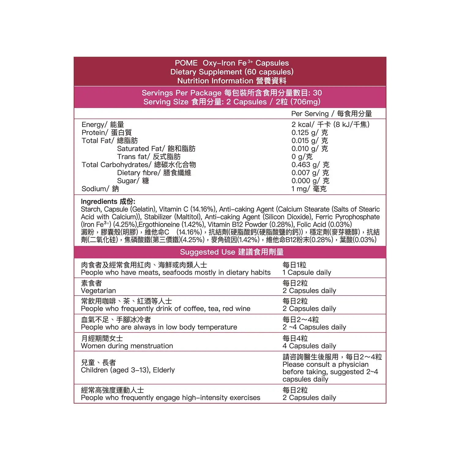 - Different from most iron supplement products on the market, POME Oxy-Iron Fe3+ Capsules uses ferric