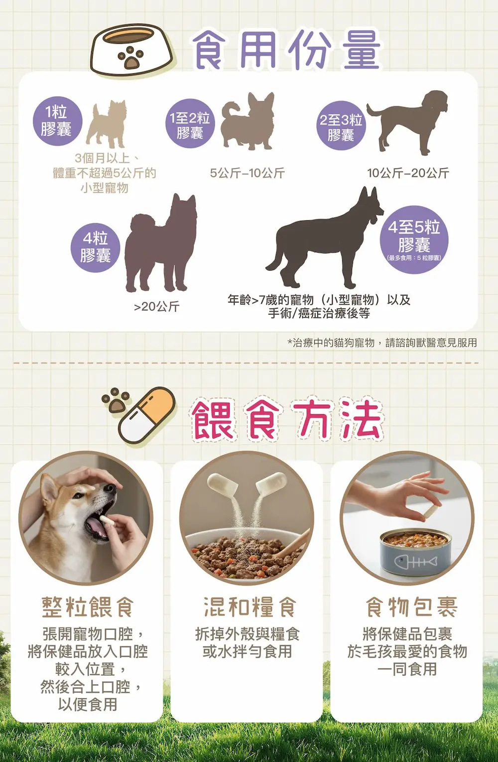 Pet cats and dogs, recommended dosage: