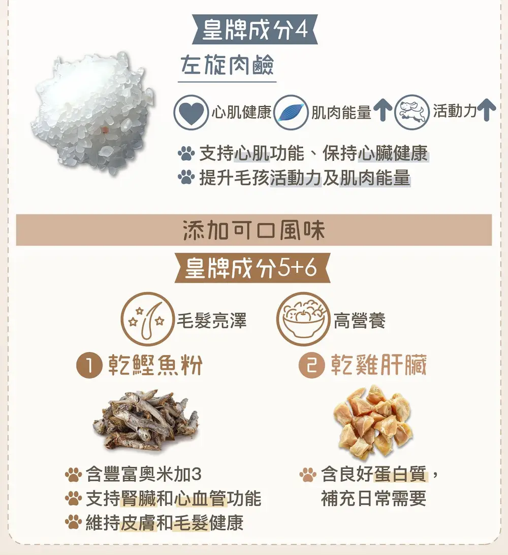 Supplementing L-carnitine can enhance vitality and endurance, support muscle and heart health, and is particularly suitable for elderly or post-surgery pets. Research shows its positive effects on cardiovascular and energy metabolism, serving as a natural supplement to prevent related issues.